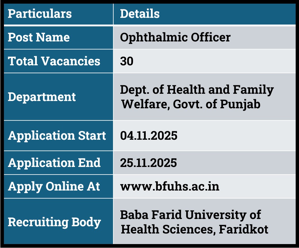 Here’s a quick overview of the key details (BFUHS Ophthalmic Officer Recruitment 2025):