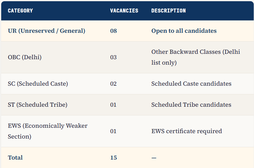 📌Note for OBC Candidates: Only OBC (Delhi) candidates listed in the GNCT of Delhi notification will receive OBC reservation benefits. OBC candidates from other states will be treated as Unreserved/General category. Your OBC Non-Creamy Layer certificate must be issued on or after 01/04/2025.