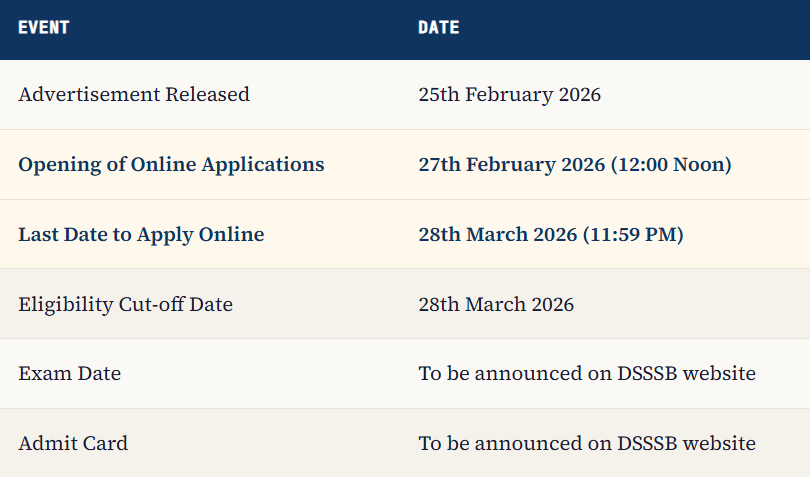 ⏰Apply Early! Don’t wait for the last date — heavy server traffic on closing days can prevent you from submitting. DSSSB is not responsible for technical issues on your end. Apply well before 28th March 2026.